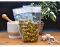 Le olive denominate olive Nocellara sono olive di elevato pregio provenienti dalla Sicilia. Queste olive sono in effetti tra le piú rinomate nel mondo. Dalla provincia Trapanese, queste olive poi seguono un particolare processo noto come il sistema sivigiliano. Noto anche come processo a fermentazione lattica, il sistema sivigiliano viene realizzato attraverso una lavorazione che prevede la deamarizzazione dei frutti e la successiva fermentazione lattica naturale. Quest' ultima si realizza ad opera di batteri lattici che trasformano gli zuccheri in acido lattico con conseguente abbassamento del pH delle olive. Le dolci olive intere Nocellara del Belice, caratterizzate dal colore verde intenso e soave, sono caratterizzate da un sapore gradevolmente acidulo e poco salato. Per un facile e veloce aperitivo, perché non servire una scodella di queste olive Nocellara, accompagnate da un piatto di verdure fresche. Utilizzate classicamente durante un aperitivo, cosparso con una spruzzata leggera di olio d'oliva ed una spolverata di peperoncino. Il tutto poi accompagnato da un buon vino bianco o da un martini dry, a base di gin e vermouth.