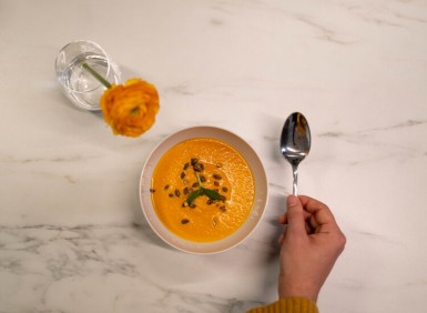 - Concludere aggiungendo della noce moscata e della cannella, se si gradiscono. E’ obbligatorio invece condire la vellutata di zucca con un filo d’olio extravergine a crudo e accompagnarla con dei crostini di pane, precedentemente irrorati d’olio extravergine e cotti in forno o in padella per 5 minuti.